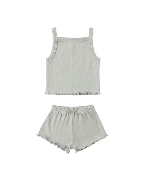 This pointelle set is a sure summer staple! Featuring a square neck tank top and shorts with an elastic waistband and bow detail.