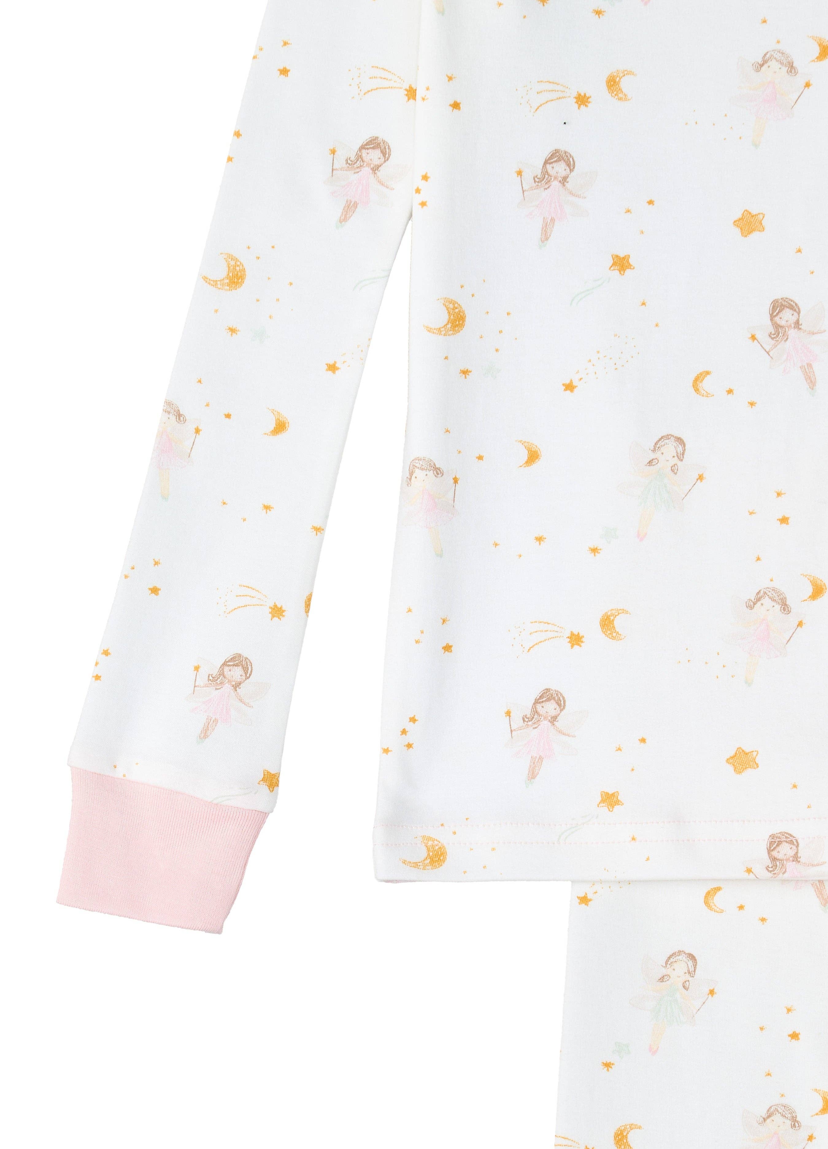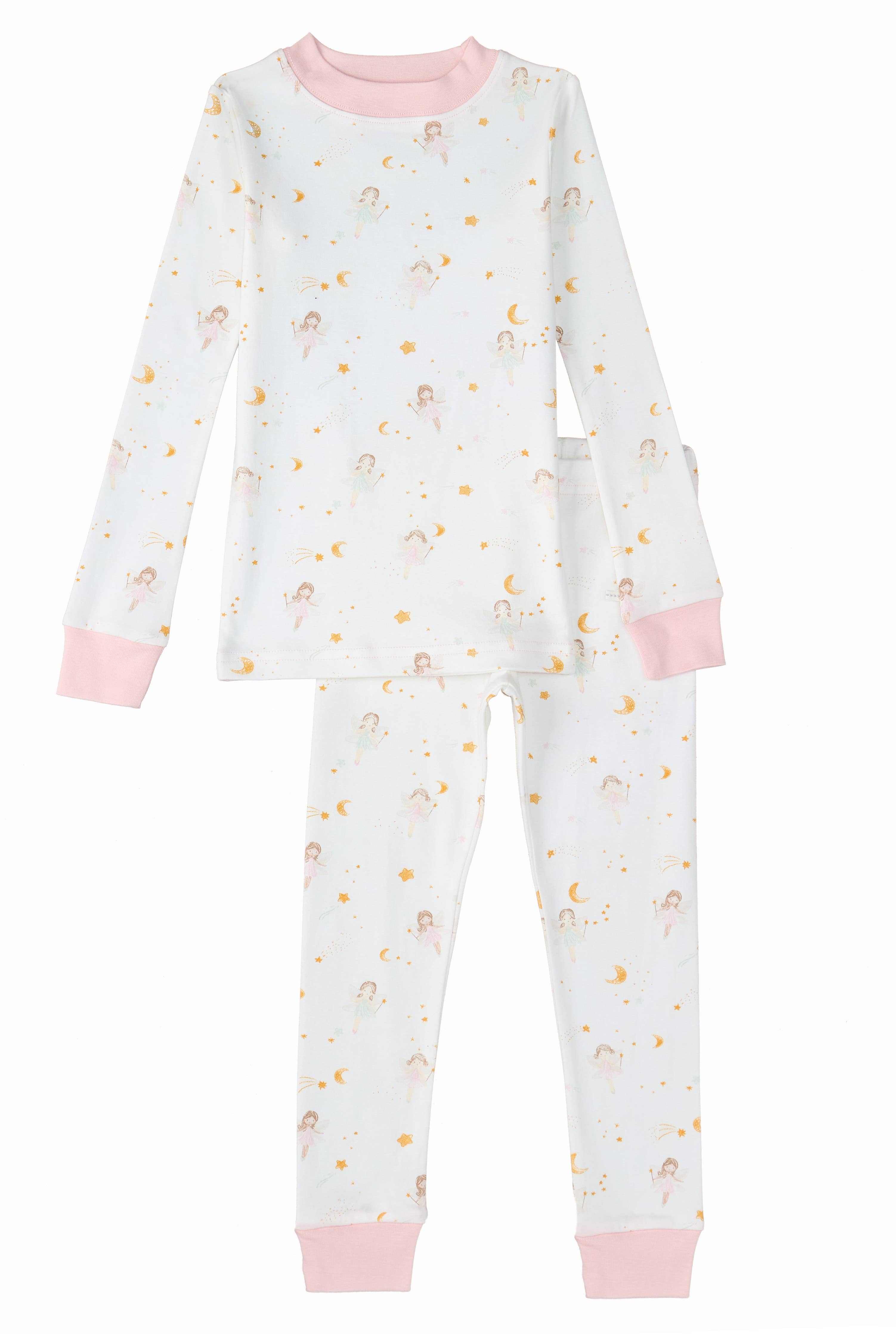 Sweet dreams start with pure comfort. Our Dreamland Girl Long Johns are made from luxuriously soft 100% Egyptian organic cotton in a breathable interlock knit. This whimsical print features soft illustrations of little fairies dancing flying among stars and moons, finished with gentle blush-pink rib trim at the neckline and cuffs. Designed for a snug, comfortable fit that meets Federal Safety standards for children’s sleepwear (16 CFR Parts 1615 & 1616). This garment is not flame resistant, and a snug fit is required for your child’s safety.