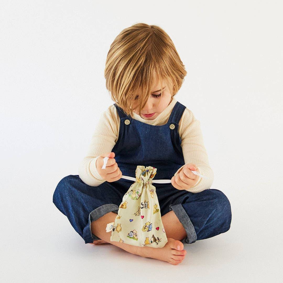 This Winnie the Pooh Pouch is illustrated with Pooh, Piglet, Tigger, Eeyore, and friends, inviting little stories and quiet moments of play.